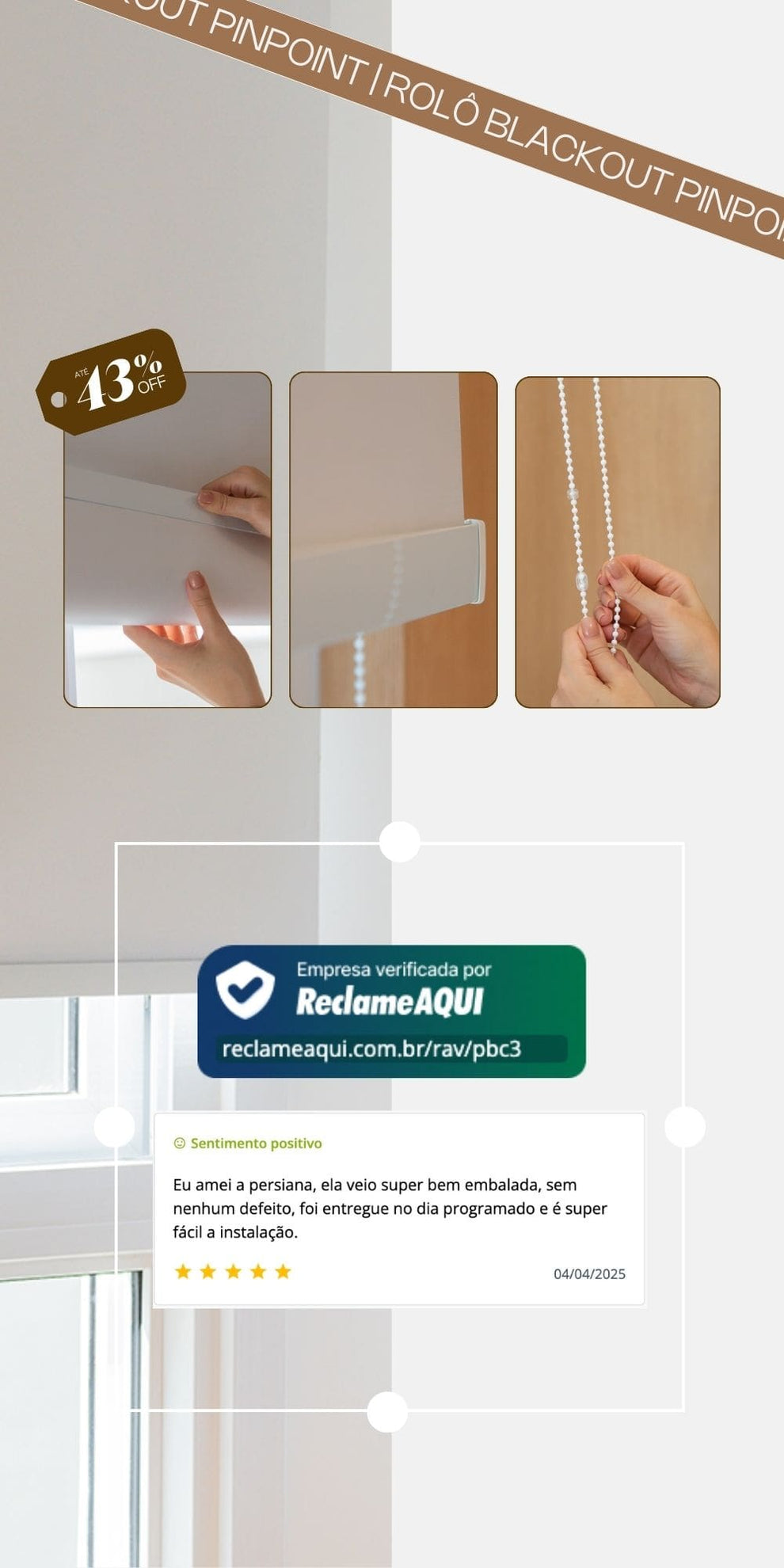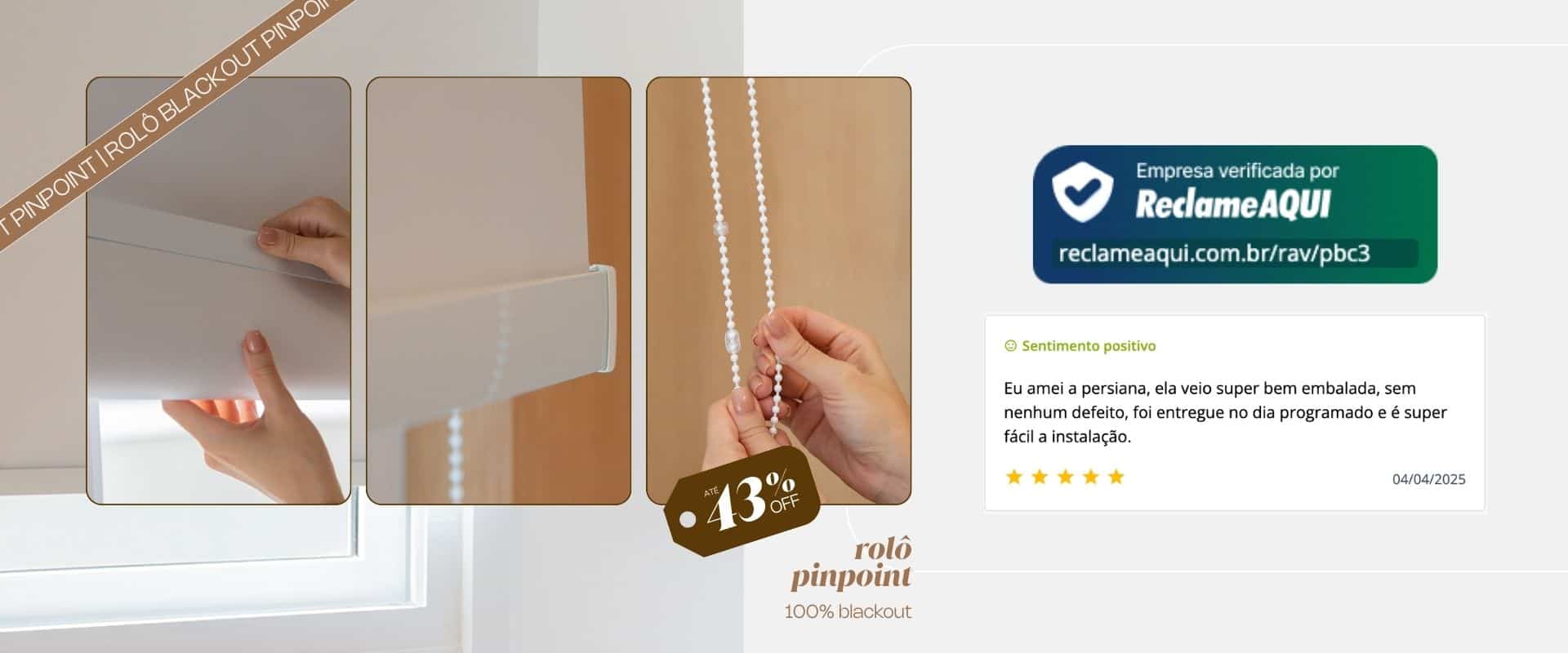 ''Eu amei a qualidade da persiana e o quanto ela trouxe mais conforto e privacidade para o nosso quarto"
