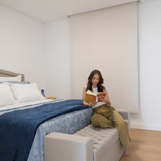 Os tecidos blackout da Fácil Persianas oferecem diferentes acabamentos e sensações, atendendo a diversas preferências e estilos de decoração. Cada tipo de tecido proporciona 100% de bloqueio de luz, mas se destaca por sua aparência e características exclusivas. Confira a tabela abaixo para comparar os detalhes dos tecidos Pinpoint, Texturizado e Liso, e escolha o que melhor se adapta ao seu ambiente.