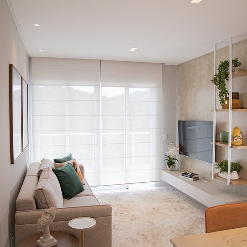 Recolhimento em camadas, ideal para espaços com luz natural.