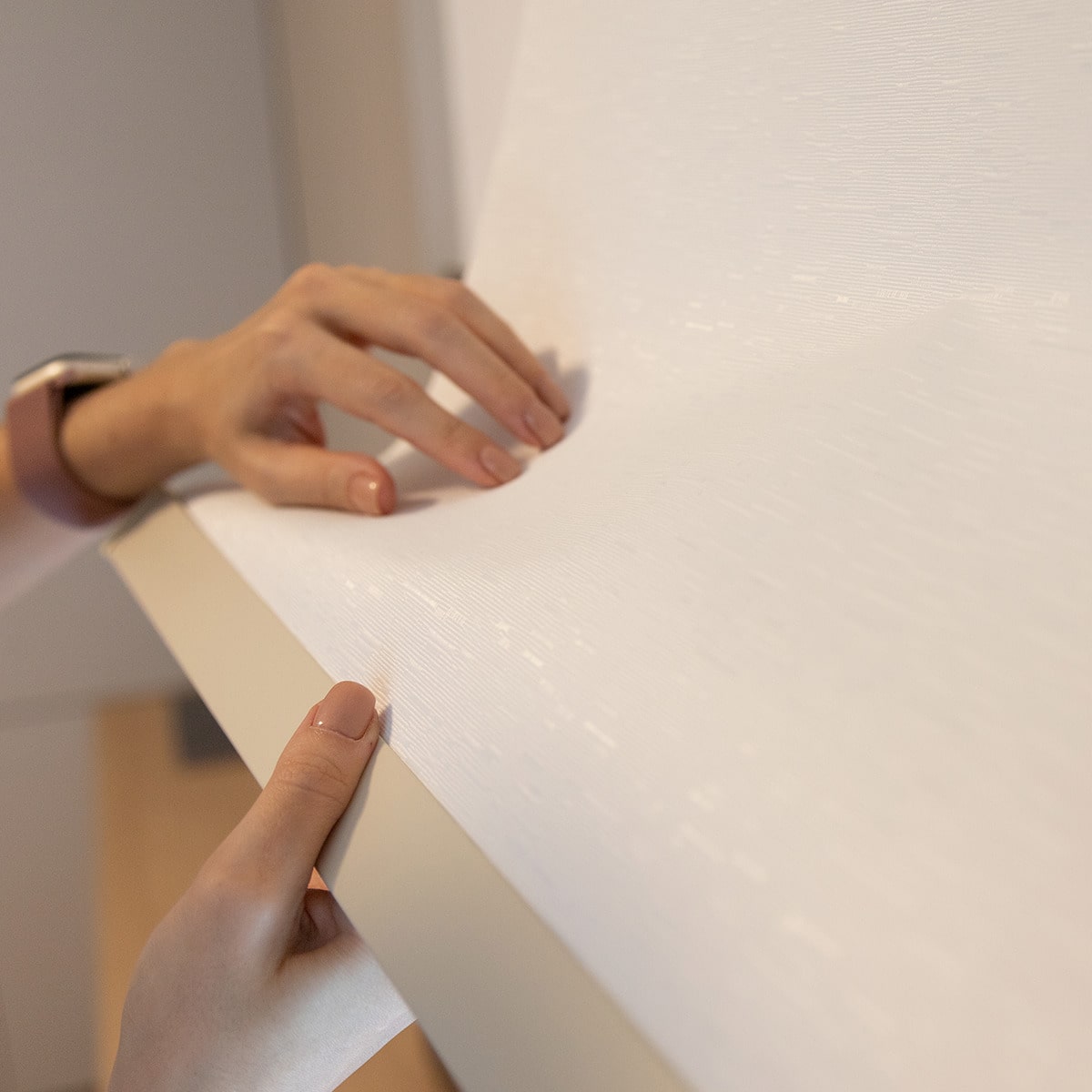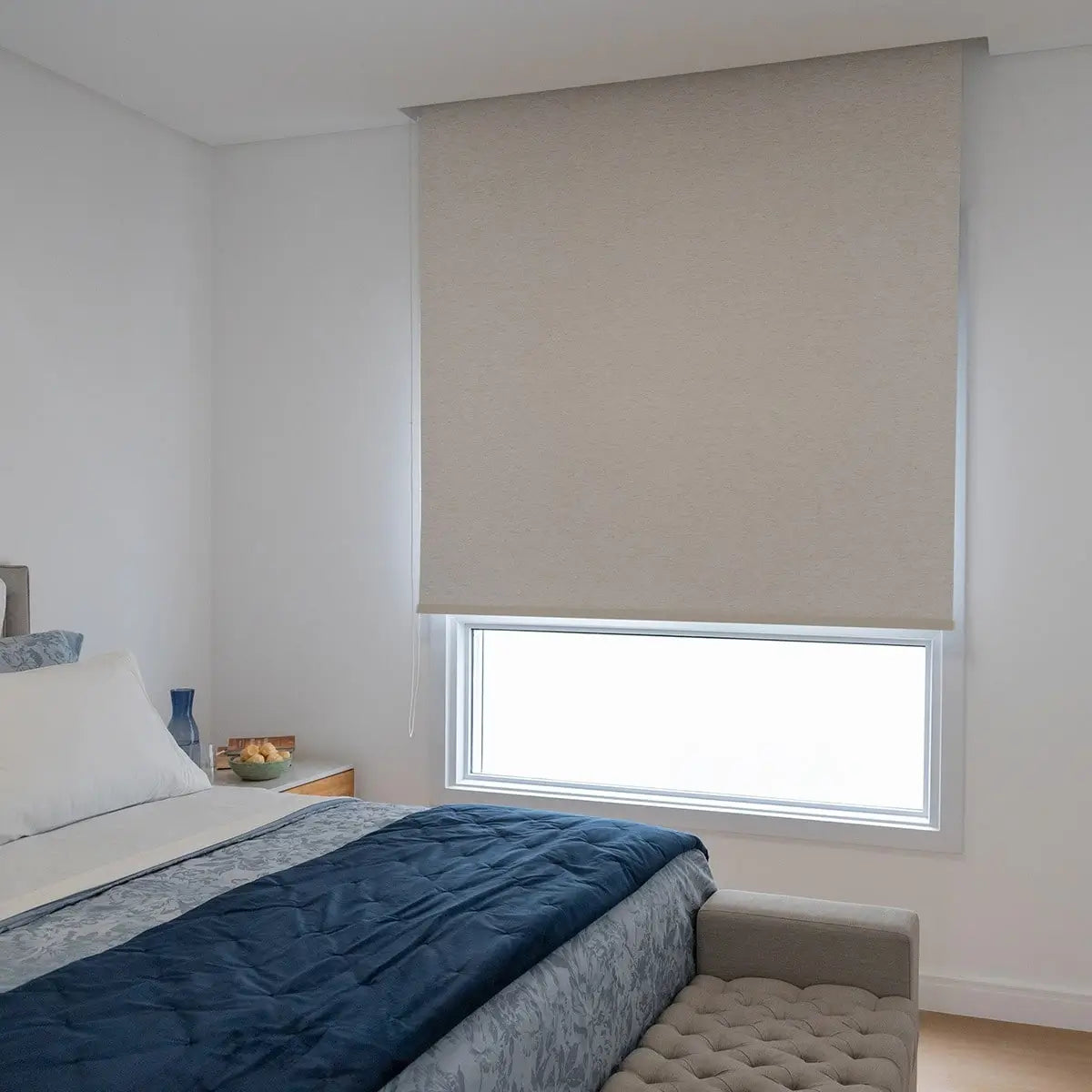 O tecido texturizado da Persiana Rolô Blackout Texturizada é composto por 100% poliéster, o material tem o aspecto aveludado no verso e na frente, uma camada texturizada que traz muita sofisticação.