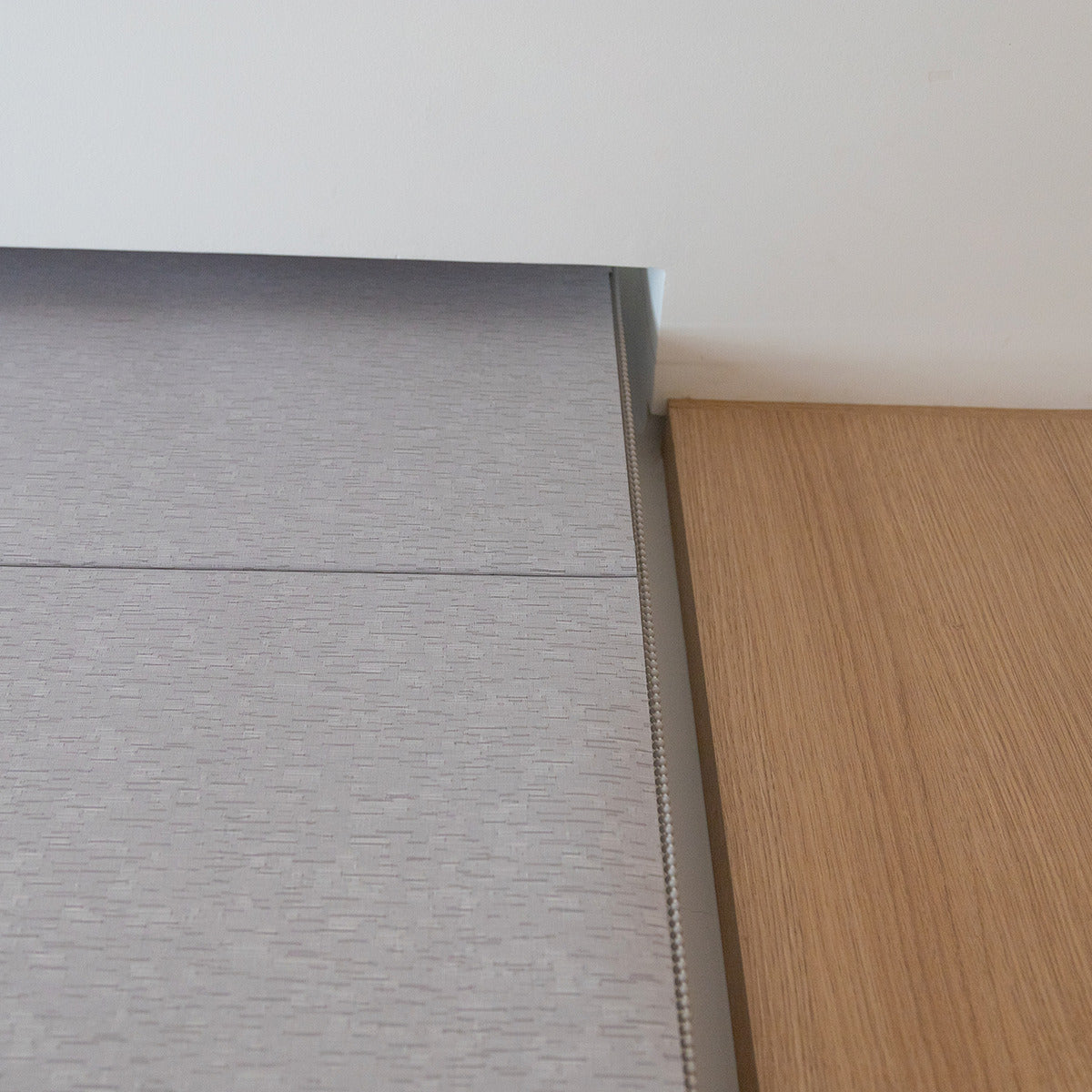 Instalando as persianas lado a lado, de forma que os suportes delas se encostem, o espaço sem tecido entre elas será de 30mm a 35mm (3cm a 3,5 cm).